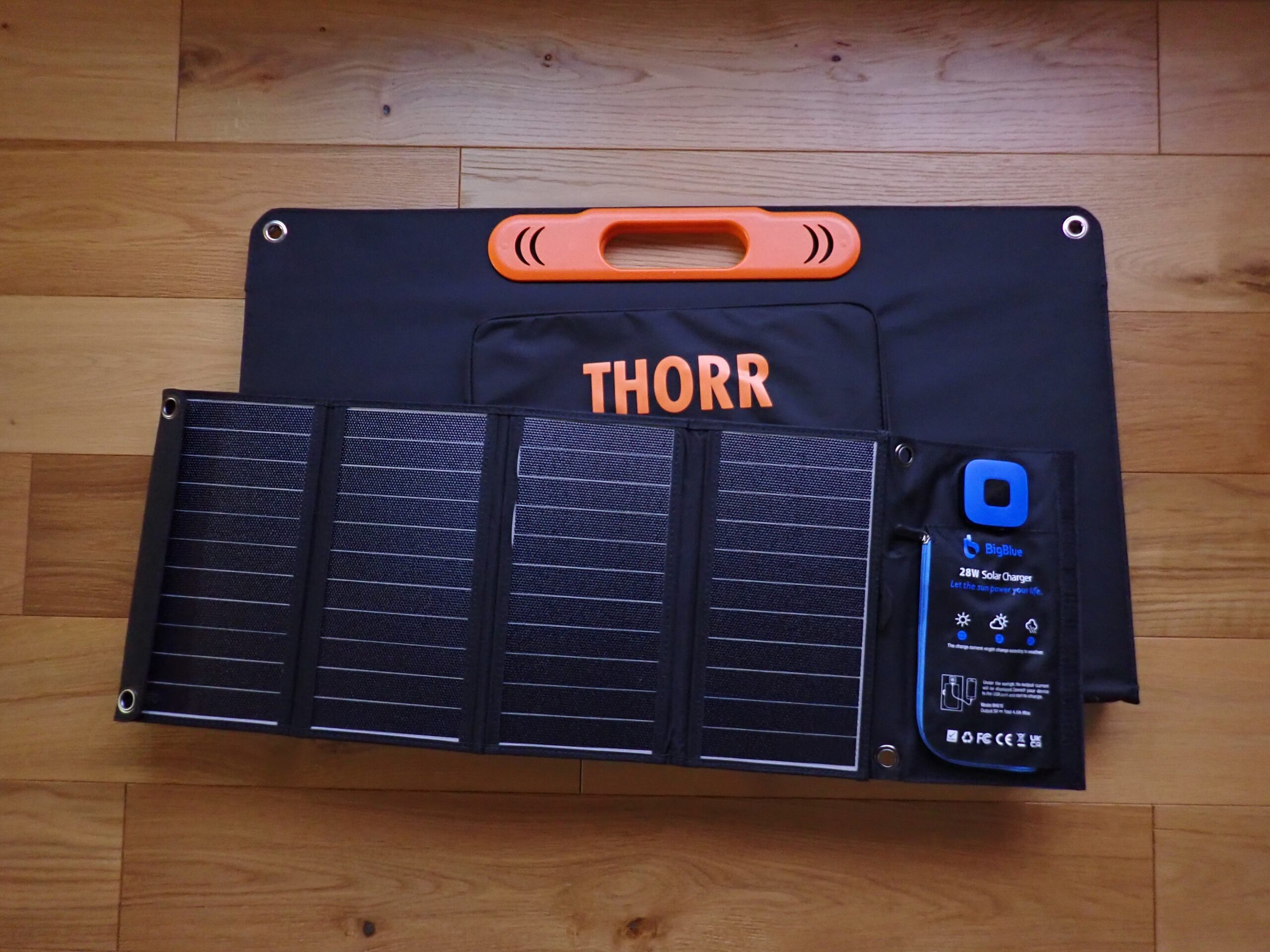 使用しているのは [BigBlue 28Wソーラーチャージャー](chatgpt://generic-entity?number=0)。