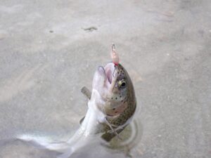 ストリームで使ったりすると、1.8gや1.6gのスプーンでは問題ないけど、1.0g前後になると流れに逆らった瞬間に浮きすぎてしまい、かなり使いづらく感じる。