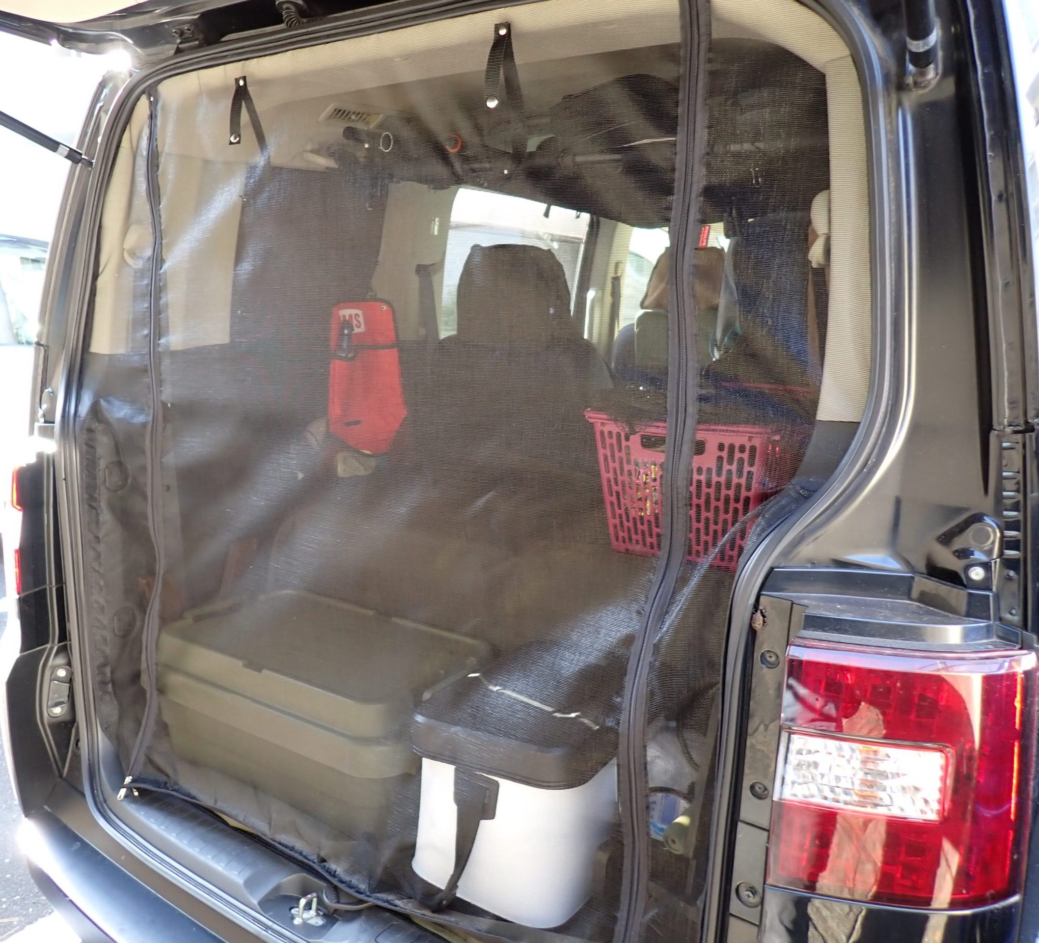 この清涼ネットがあれば、リアゲートをフルオープンにしても虫が全く入らない。